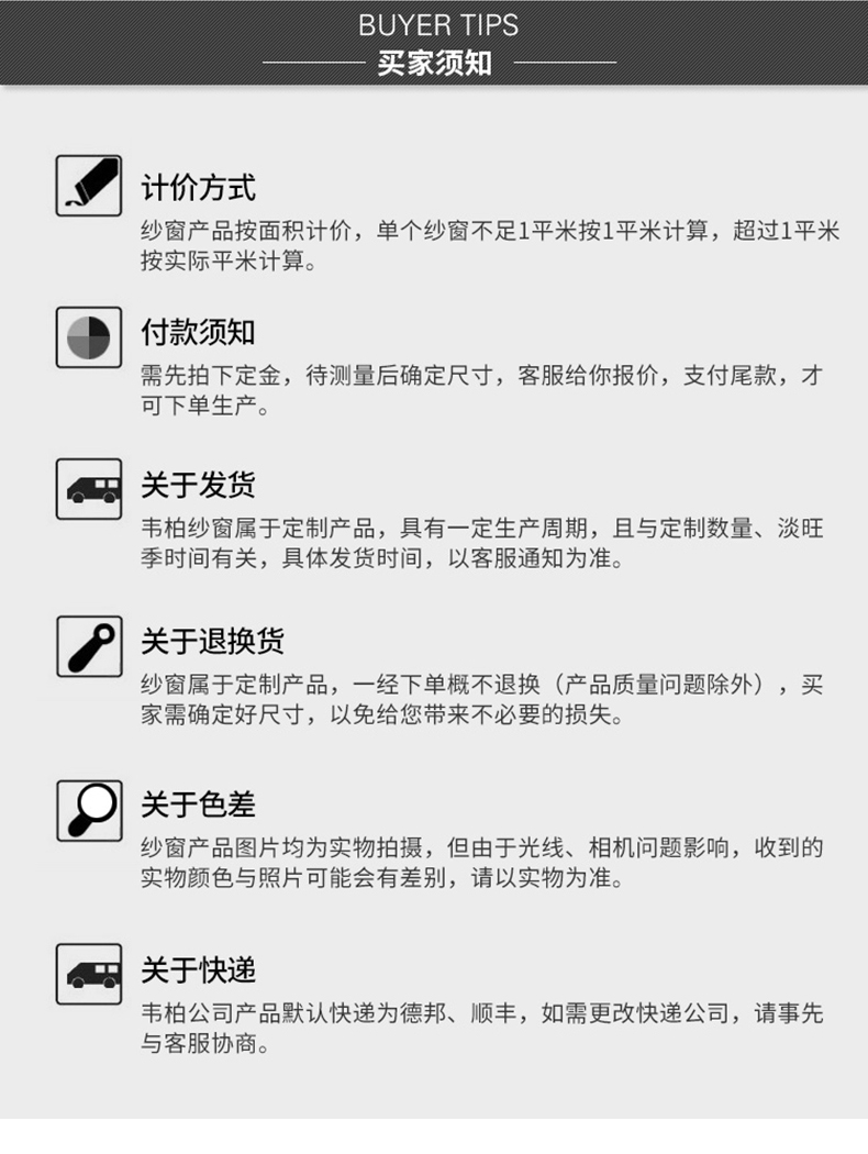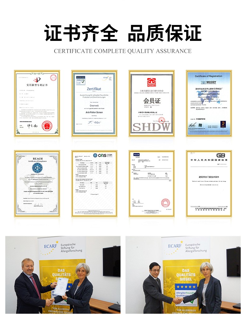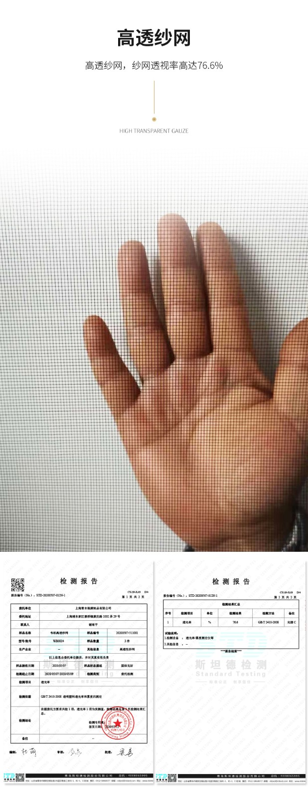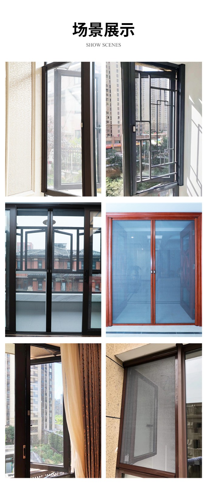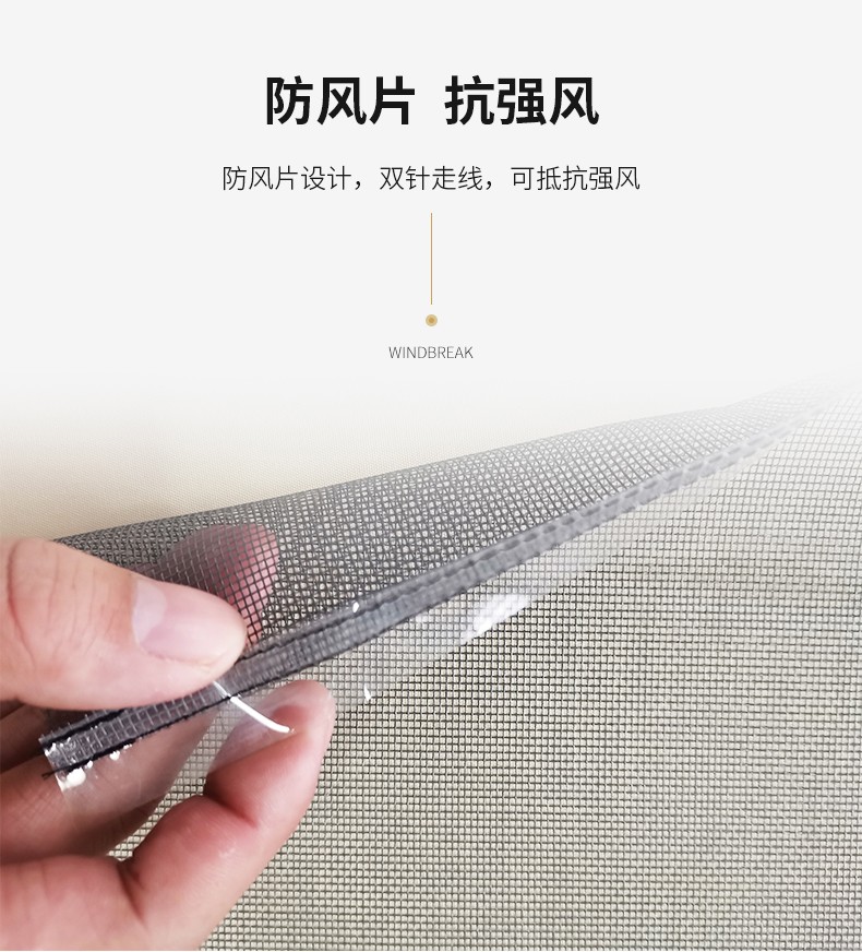 1.緩沖防撞 2.張力防風 3.安裝簡易 4.啟閉靈巧 5.自動除塵 6.紗網抗紫外實驗5 年無損傷 7.成品老化次數6 萬次無損傷
